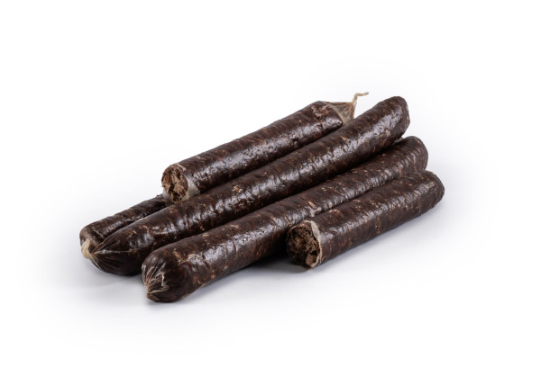 Okse pølser er en lufttørret pølsespecialitet til hunde. Vores oksepølser er udelukkende lavet af oksekød af høj kvalitet uden tilsætning af kunstige farver, smagsstoffer , konserveringsmidler, emulgatorer, stabilisatorer, antioxidanter, laktose eller gluten. Denne lufttørrede belønningspølse (ca. 19 cm lang, 18 mm i diameter og vejer ca. 26 g) vil blive din firbenede vens nye