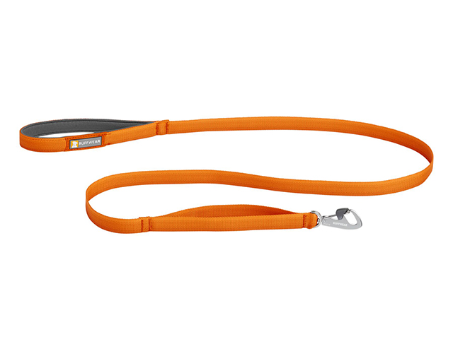 En Front Range førerline er stærk, men ganske let. Den kan derfor bruges til hunde i alle størrelser. Håndtaget er foret, så det er behageligt at gå med. Linen er med trafik-håndtag. Det er et håndtag tæt på karabinhagen, som er sat i hundens halsbånd og line. Når du så f.eks. krydser en gade, kan du nemt tage fat i håndtaget, så du har hunden helt tæt på dig. Kan matches med en Ruffwear Front Range sele og halsbånd